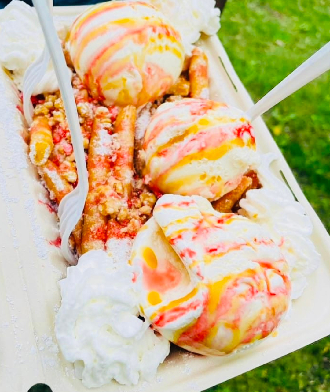Our shop specializes in unique treats that are sure to satisfy your sugar cravings. From our refreshing flavorful shaved ice to our golden crispy funnel cake fries and an array of specialty drinks, we have something for everyone to enjoy.